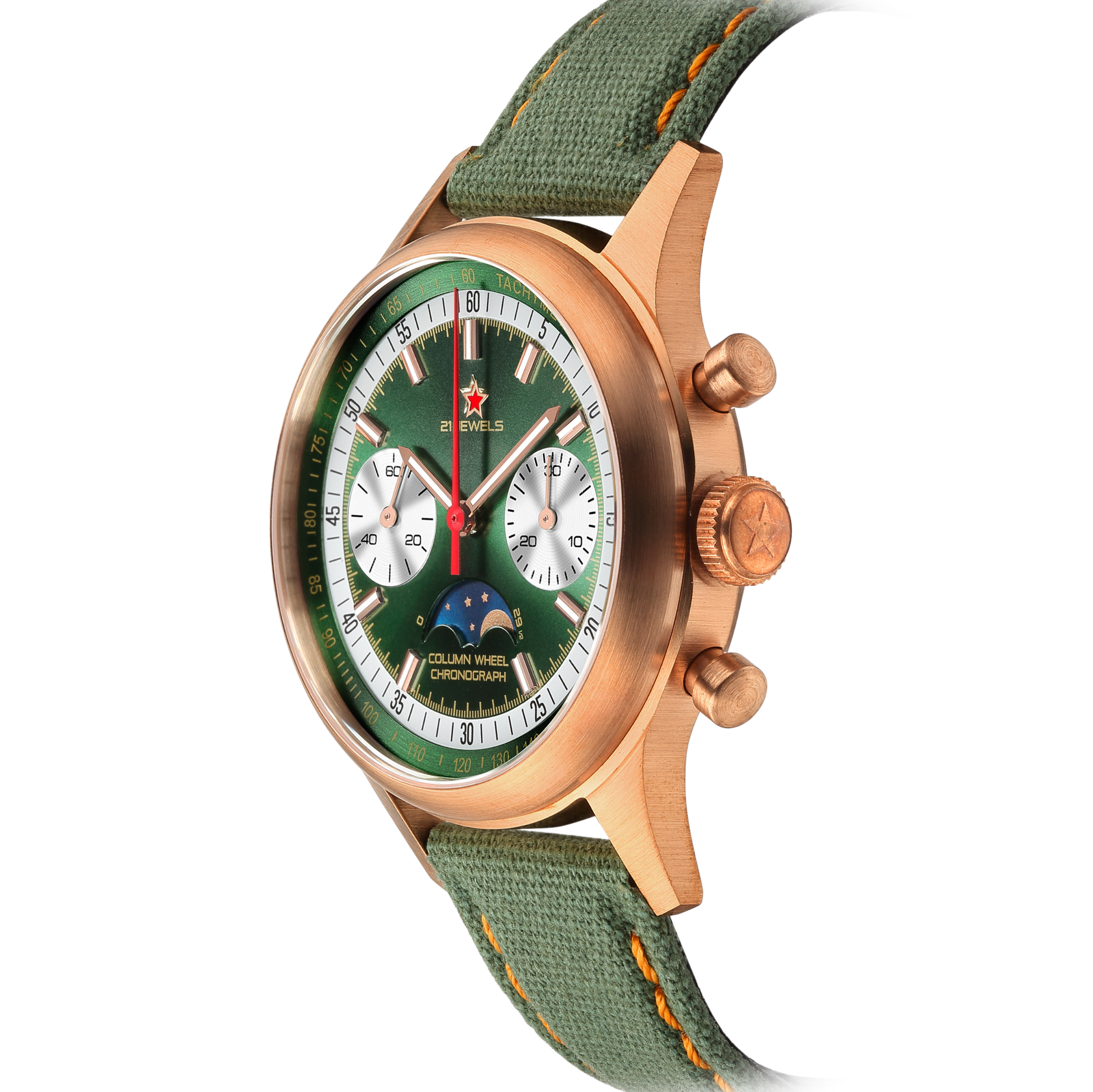 The ST19 movement, paying homage to the revered Swiss Venus 175 movement, has a rich history dating back to the mid-20th century. Crafted by the Tianjin Watch Factory using the original machinery from the fifties and fully assembled by hand, it features 21 jewels and a robust 42-hour power reserve.