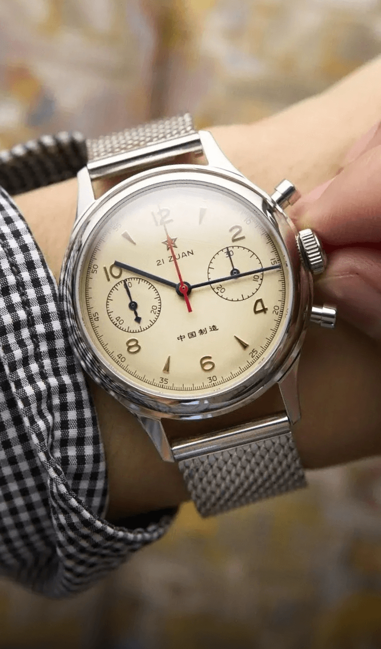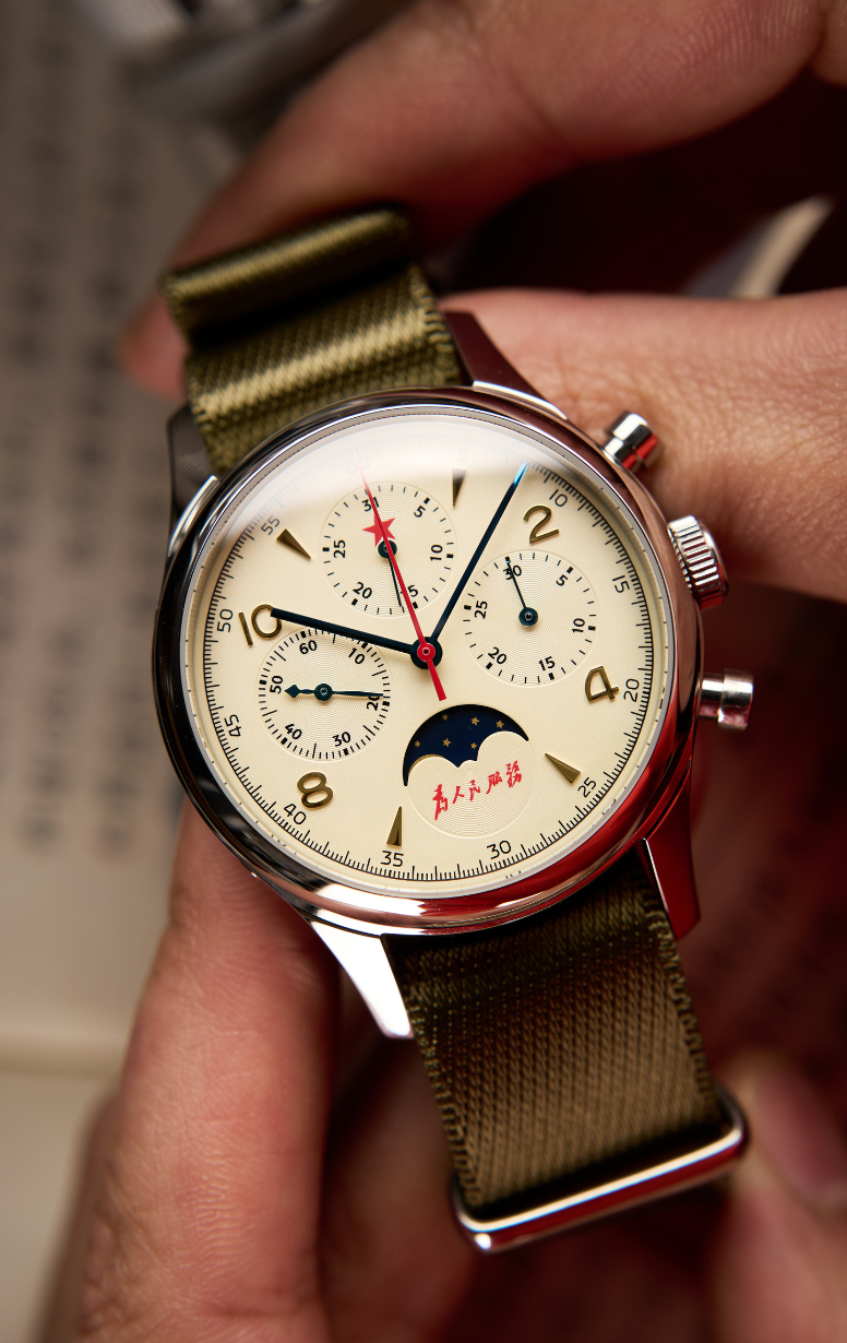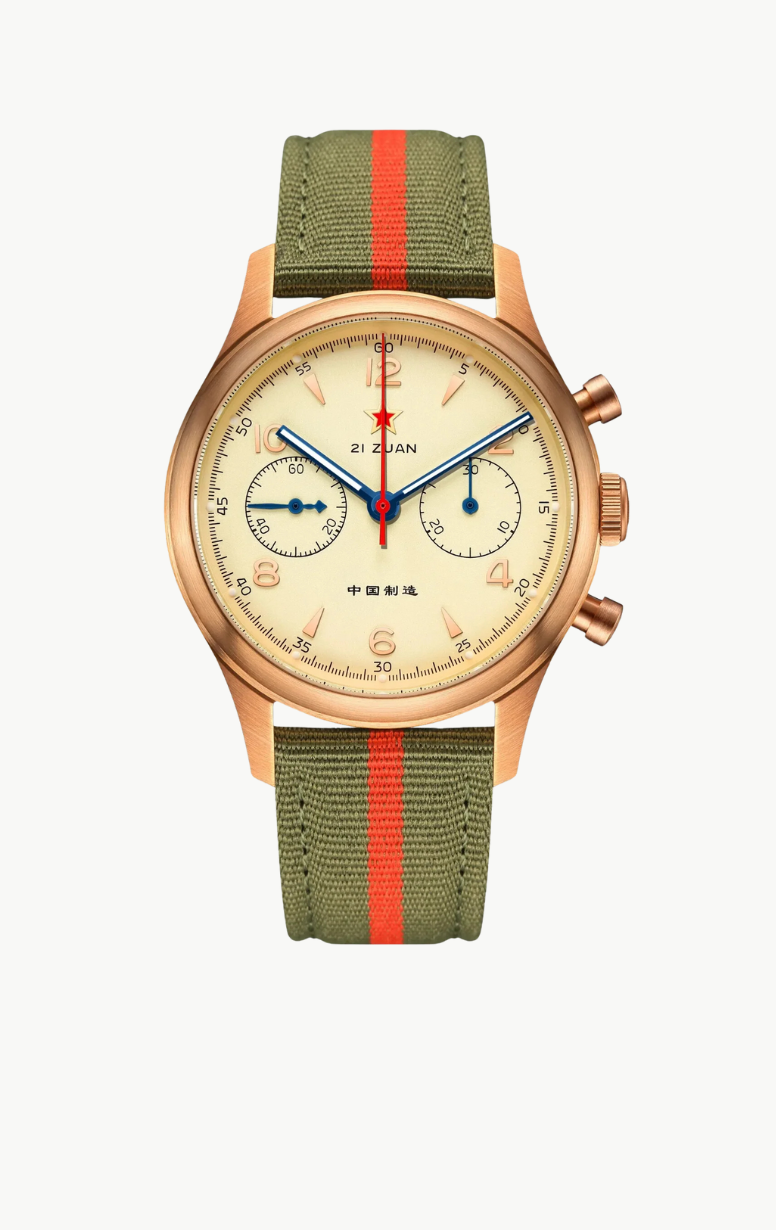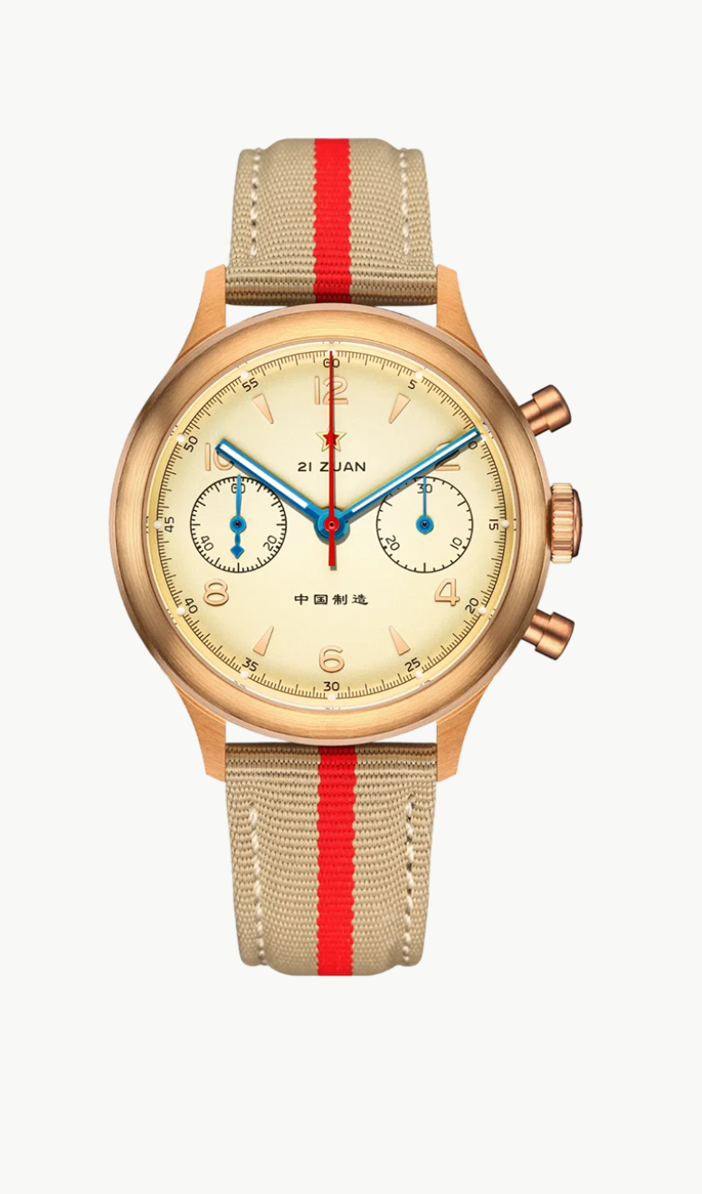 Questo epico orologio omaggio riflette il design dei primi orologi cinesi prodotti nel 1955. Questo orologio omaggio riflette lo stile vintage degli antichi orologi cinesi. Il vetro minerale, il cinturino retrò in acciaio a molla, il quadrante color panna o champagne e la simbolica stella rossa ricordano tutti il design del classico originale. Questo orologio omaggio è un must per gli amanti degli orologi vintage. Si trova nello stesso settore del Seagull 1963 e puoi trovare maggiori informazioni sul Red Army Wuxing nel nostro sito web!