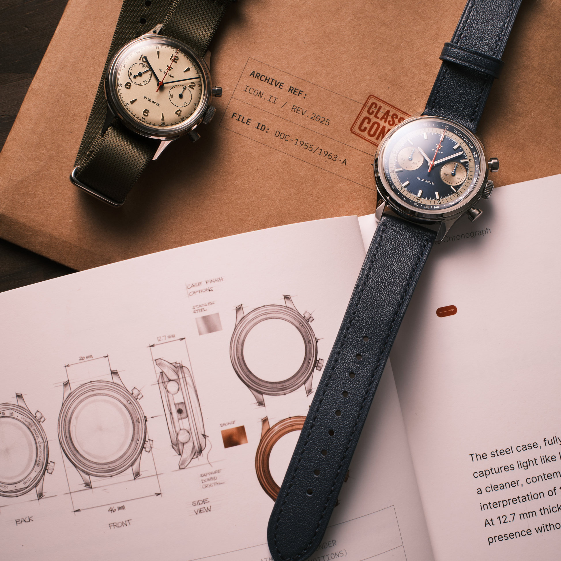 In 1955, the Seagull 1963 defined an era as the nation’s first pilot’s chronograph. Today, the Icon II returns as a modern reinterpretation, refining the original design for a new generation while splitting the legacy into two distinct characters.
