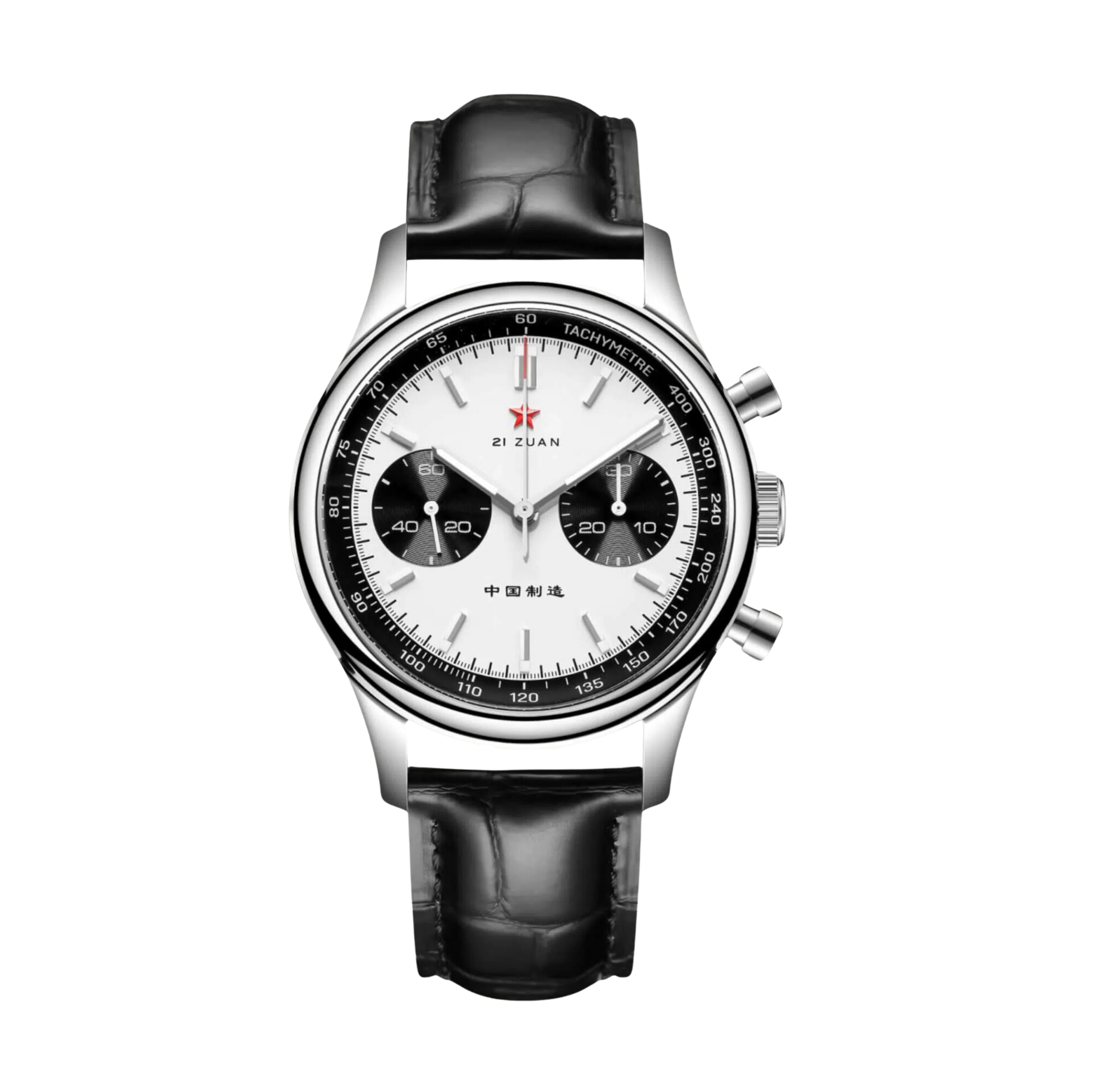 Wat dit horloge bijzonder maakt, is de toevoeging van de iconische witte panda-dial – een stijlvolle en gedurfde uitstraling die zijn oorsprong vindt in klassieke chronografen. De twee register-indicatoren op de wijzerplaat creëren een perfecte balans tussen esthetiek en functionaliteit, terwijl de handmatige opwindfunctie en de precisie van het mechanisme zorgen voor een uitstekende tijdmeting.