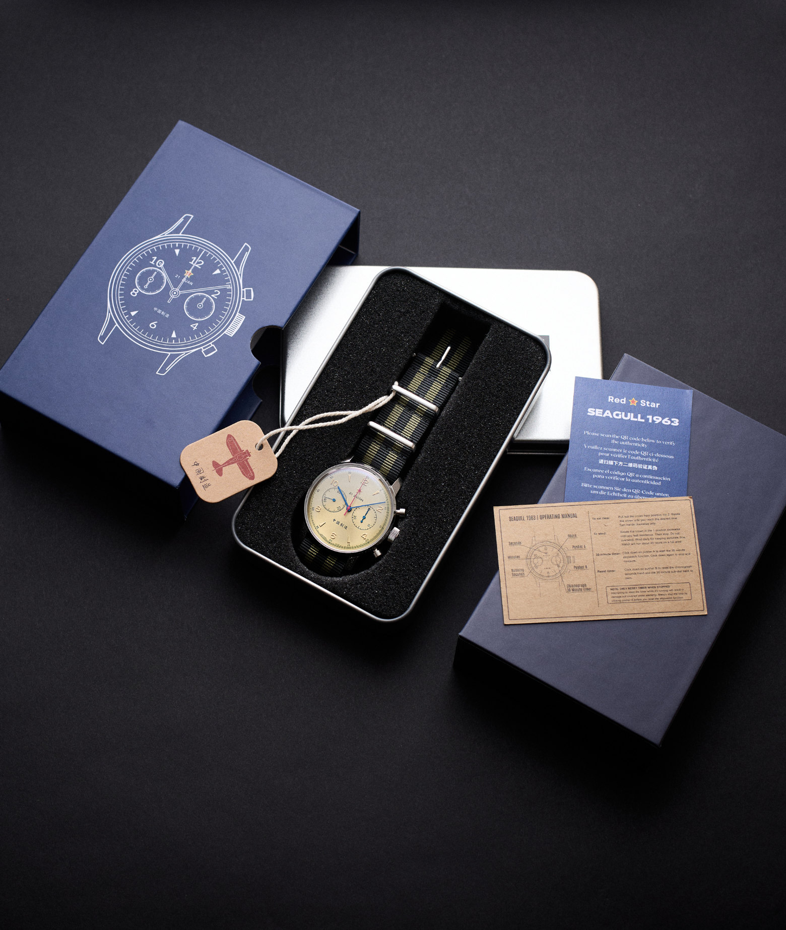 As a final touch, discover a card featuring a unique QR code, allowing you to verify the authenticity of your Seagull 1963 watch. Because at Seagull, the journey of your timepiece is as significant as its impeccable craftsmanship.