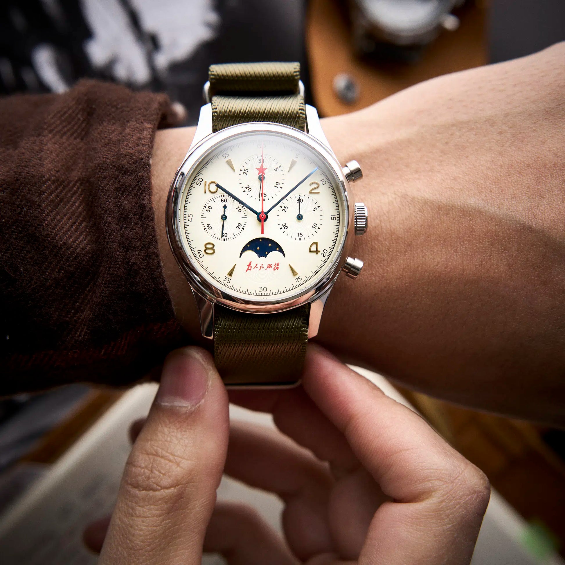The ST19 movement, paying homage to the revered Swiss Venus 175 movement, has a rich history dating back to the mid-20th century. Crafted by the Tianjin Watch Factory using the original machinery from the fifties and fully assembled by hand, it features 21 jewels and a robust 42-hour power reserve.
