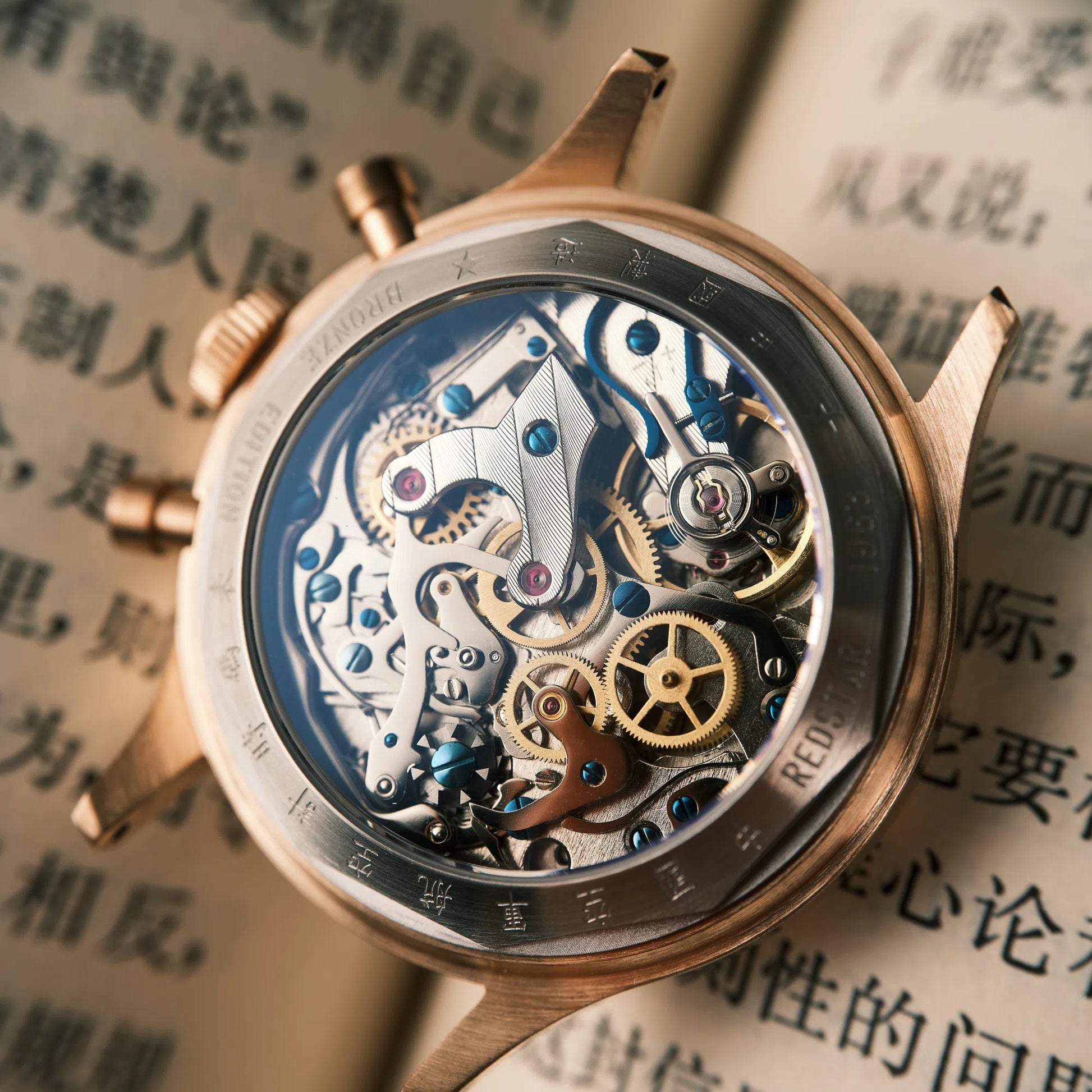 The ST19 movement, paying homage to the revered Swiss Venus 175 movement, has a rich history dating back to the mid-20th century. Crafted by the Tianjin Watch Factory using the original machinery from the fifties and fully assembled by hand, it features 21 jewels and a robust 42-hour power reserve.