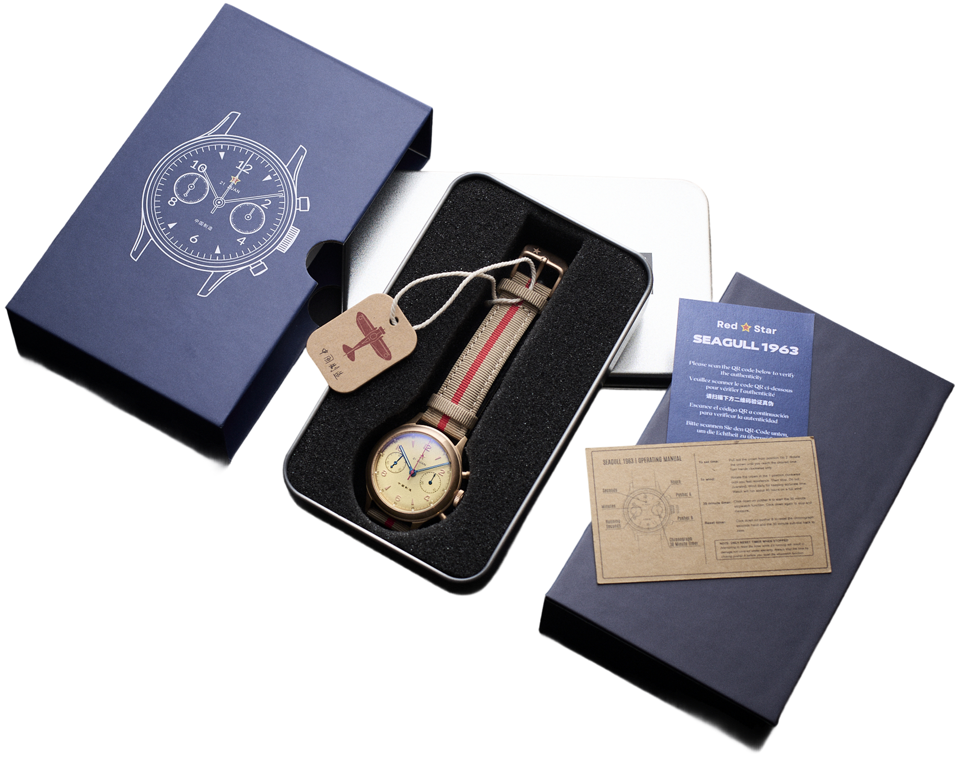 As a final touch, discover a card featuring a unique QR code, allowing you to verify the authenticity of your Seagull 1963 watch. Because at Seagull, the journey of your timepiece is as significant as its impeccable craftsmanship.