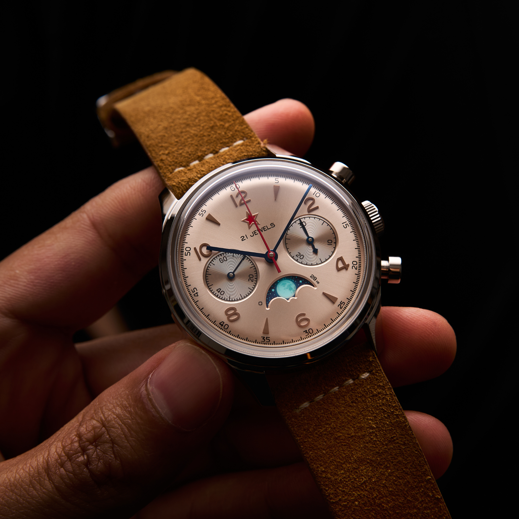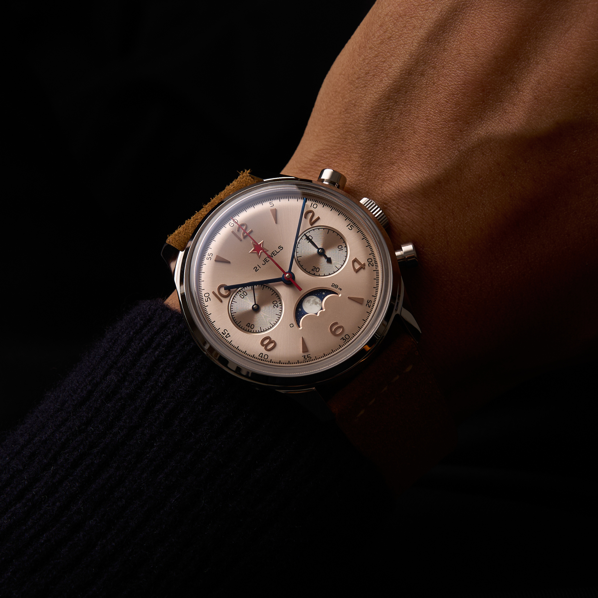 Thank you so much! We’re glad you’re enjoying the unique combination of chronograph and moonphase, it truly makes the watch special.