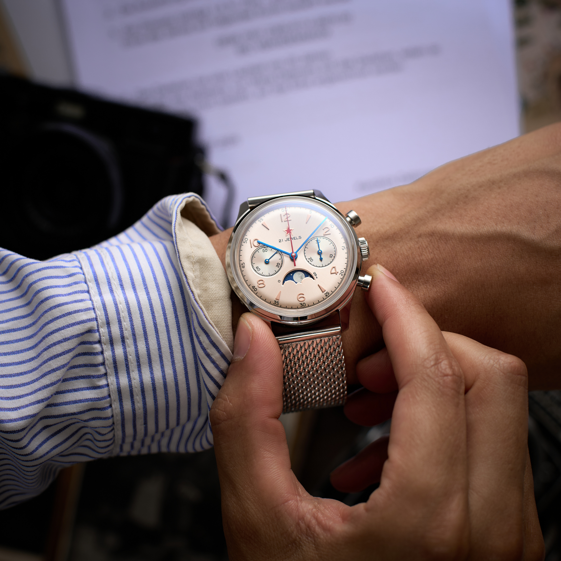 In 1955, Chinese watchmaking began with a singular mission: to develop the nation’s first pilot’s chronograph. Known internally as Project D304, the result laid the foundation for seventy years of continuous mechanical craftsmanship.